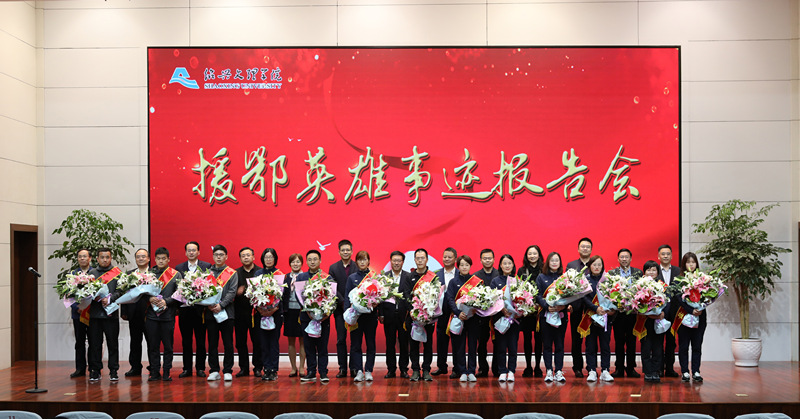 4月22日,在返校复学前,学校举行了援鄂英雄事迹报告会,表彰了附属医院13位援鄂医护人员,并邀请3位援鄂医护人员代表,通过云端直播的方式,用亲身经历为全校万余师生讲授了一堂生动鲜活的思政大课。