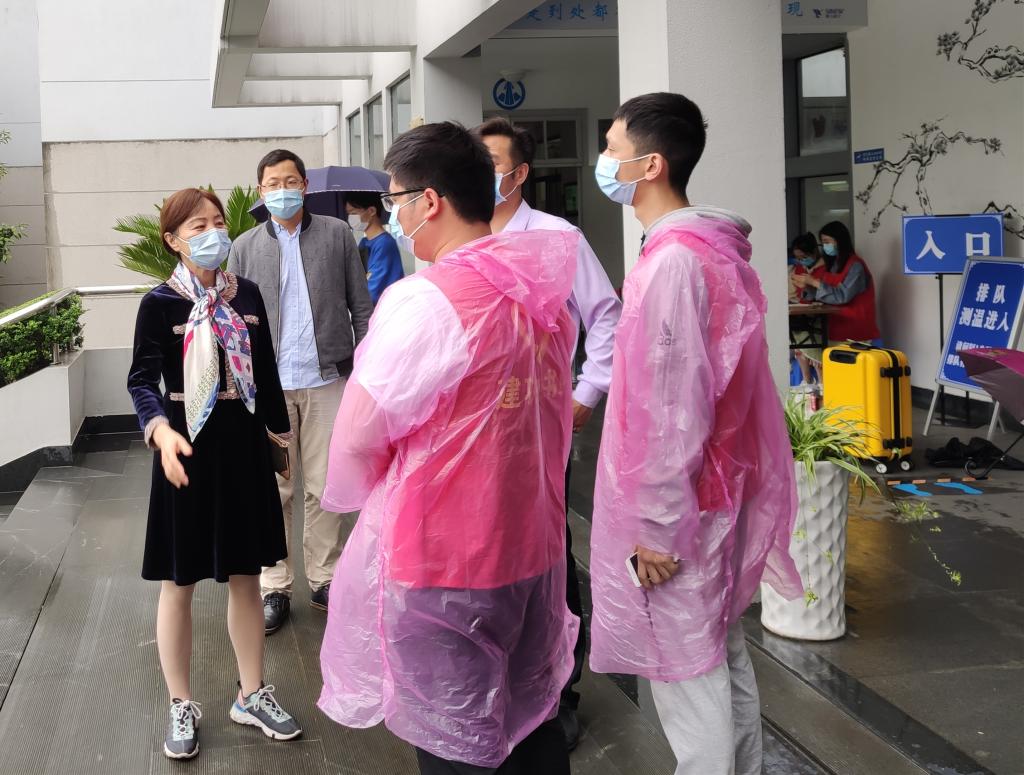 “今天天气比较冷,要注意保暖。”“你们辛苦了!”机关党员和各学院老师组成的志愿者队伍,成为学生返校服务的主力军,从凌晨到日暮,从烈日到大雨,24小时不断线投入工作在杭州萧山国际机场、绍兴客运中心、绍兴北站、火车站、汽车西站等返校接待点和校内返校报到点。校领导亲切慰问了正在进行志愿服务的老师,对志愿者们的辛勤周密工作表示衷心感谢,对老师们在志愿服务中彰显出的高尚师德师风表示致敬,叮嘱他们严格规范操作程序的同时,做好自身防护。
