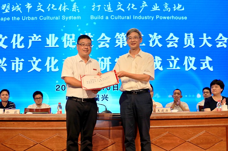 丁如兴和王建力为绍兴市文化产业研究院揭牌