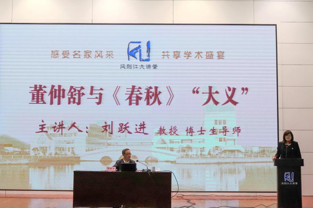 11月12日晚,中国社会科学院学部委员、文科研究所所长、中国社会科学院大学人文学院院长刘跃进教授做客“风则江大讲堂”,为我校师生作题为《董仲舒与<春秋>“大义”》的专题讲座。