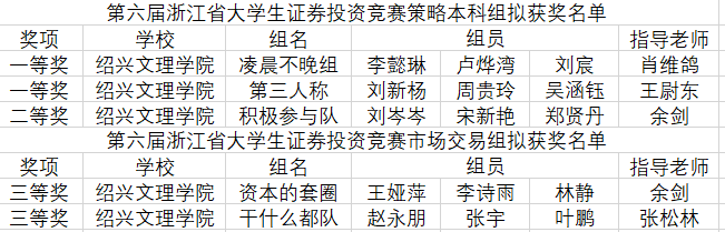 ​我校学子在浙江省第六届大学生证券投资竞赛中获奖