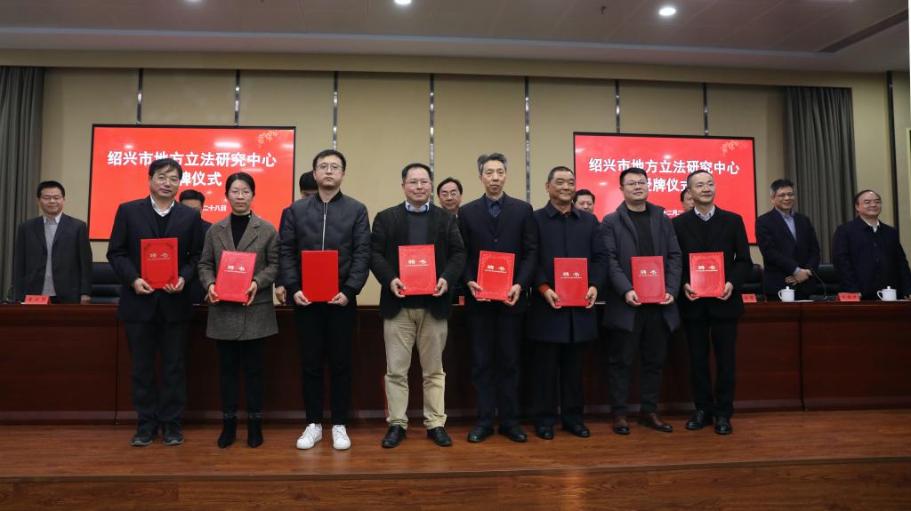 寿永明宣读绍兴市地方立法研究中心负责人任命文件和绍兴市地方立法研究中心特聘研究员聘任决定。会上,聘任黄坚为绍兴市地方立法研究中心主任,聘任喻文莉、严照良、葛天博为绍兴市地方立法研究中心副主任,聘任胡保卫、俞志慧、薛国琴教授和绍兴市水利局水政水资源处处长马阿祥等21位专家为绍兴市地方立法研究中心特聘研究员。