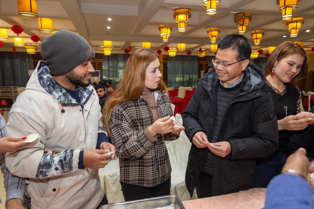演出后的“包饺子、话团圆”环节再一次将现场气氛推向高潮。在学校领导和老师的指导和耐心解说下,留学生们互相配合,认真制作。饺子入口的那一刻,品尝到的不只是美味,更是亲自动手的快乐和中华美食的奥妙。