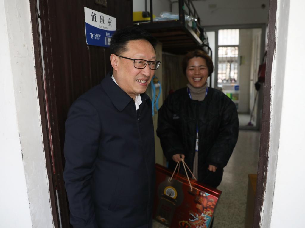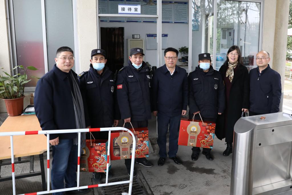 汪俊昌一行先后来到学校总值班室、河西配电房、书院值班室、河西校区大门传达室、南山校区大门传达室、附属医院、兰亭校区、上虞分院、元培学院,亲切慰问了寒假期间依然坚守岗位的教职工,致以诚挚的问候并代表学校党委和行政送上了新春祝福和慰问品。
