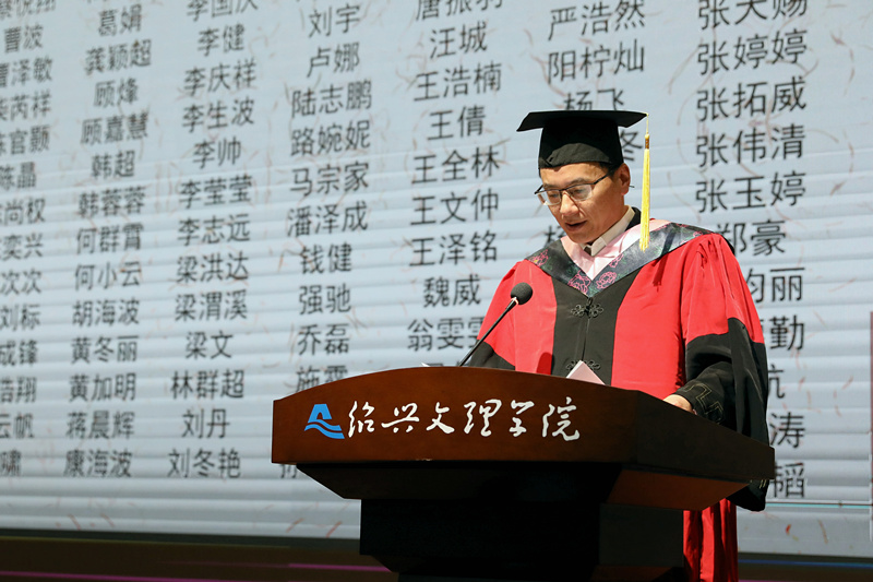 王建力为毕业生代表授予学位,颁发毕业证书。他代表学校对获得硕士学位的毕业生表示祝贺,向辛勤培育他们的导师和支持他们成长成才的亲友表示感谢。他对即将毕业离校的同学提出三点希望:一是牢记“修德”校训,厚植家国情怀;二是永葆“求真”精神,勇于开拓创新;三是秉持“卓越”理念,奋力成就梦想。