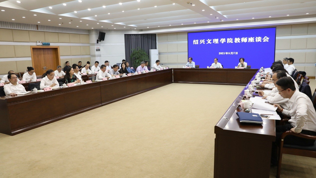 5月7日下午,学校在图书馆一楼报告厅举行教师座谈会。“卓越奖学基金”“树人奖教基金”倡设者、第十二届全国政协副主席、九三学社中央原主席、中国科协名誉主席韩启德院士,北京大学燕京学堂院长袁明教授,九三学社浙江省委会副主委盛颂恩,绍兴市政协副主席冯建荣,校党政领导班子全体成员,入围本次“树人奖”评选的教师代表和学校相关部门负责人出席座谈会。座谈会由校党委书记汪俊昌主持。