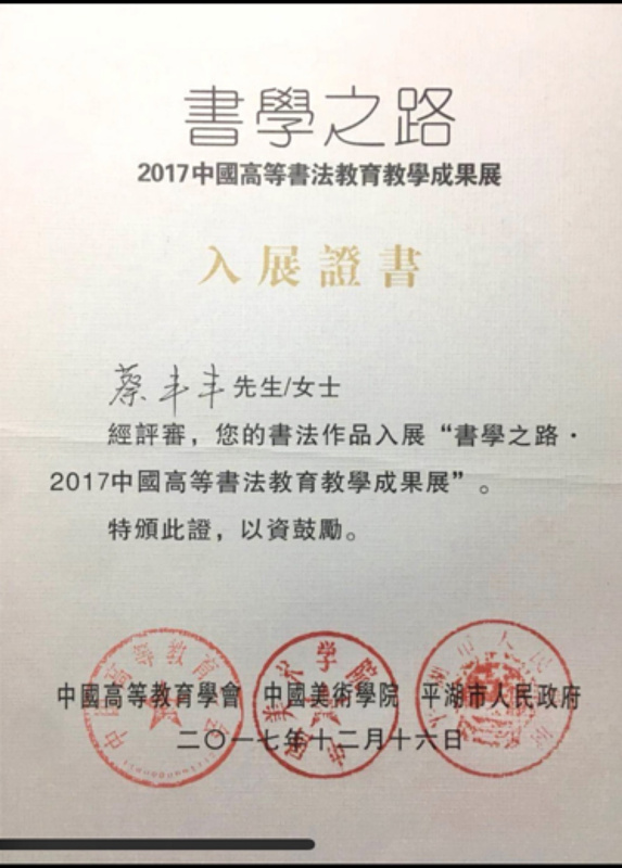 这张证书是她和全国各大高校的本科生、研究生、博士生一起进行选拔之后拿到的荣誉,也是她在书法专业方面获得的第一个肯定。