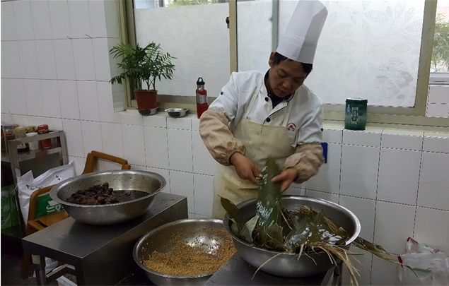 端午佳节来临之际,为传承中华民族优秀文化,营造欢乐祥和的节日气氛,餐饮服务中心于六月初举办免费品鉴粽子活动。为让教职工们都能品尝到香糯可口的粽子,食堂师傅们加班加点利用休息时间自制端午粽,每个粽子都由纯手工制作,保证新鲜口感。老师们在忙碌的工作生活中将感受到浓浓的节日氛围。同时,学校食堂将面向全校师生推出端午粽子供应,塑造文理传统美食品牌形象。