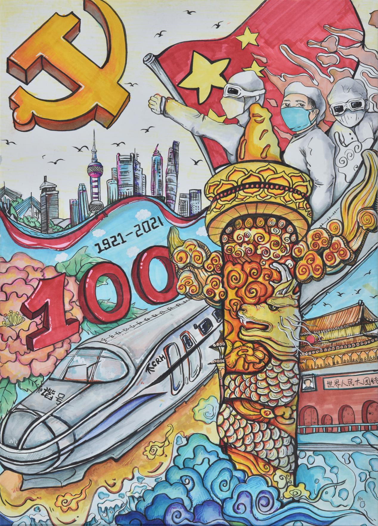 本次展览以“执笔书画 艺心向党”为主题向全校师生征集书画、海报、摄影等作品,历时两个月收集作品两百余幅,经评审选出优秀作品100幅展出,其中教师作品30幅,学生作品70幅。参展作品含中国画、油画、综合材料、书法、摄影、海报、杭绣、铜雕等多种门类作品,形式内容丰富。