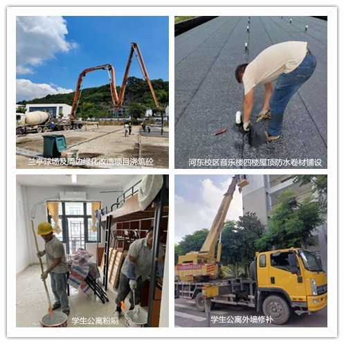 今年暑假,我校共有兰亭校区道路综合改造工程、实验室维修改造、全校教室空调供电线路敷设项目、餐厅维修、学生公寓粉刷等100余项维修工程,施工区域涉河东、河西、南山、兰亭、上虞五个校区,工程内容涵盖电力、房屋室内装饰装修、道路、防水等,项目实施面临数量多、分布广、监管难度大,协调工作杂等诸多困难。