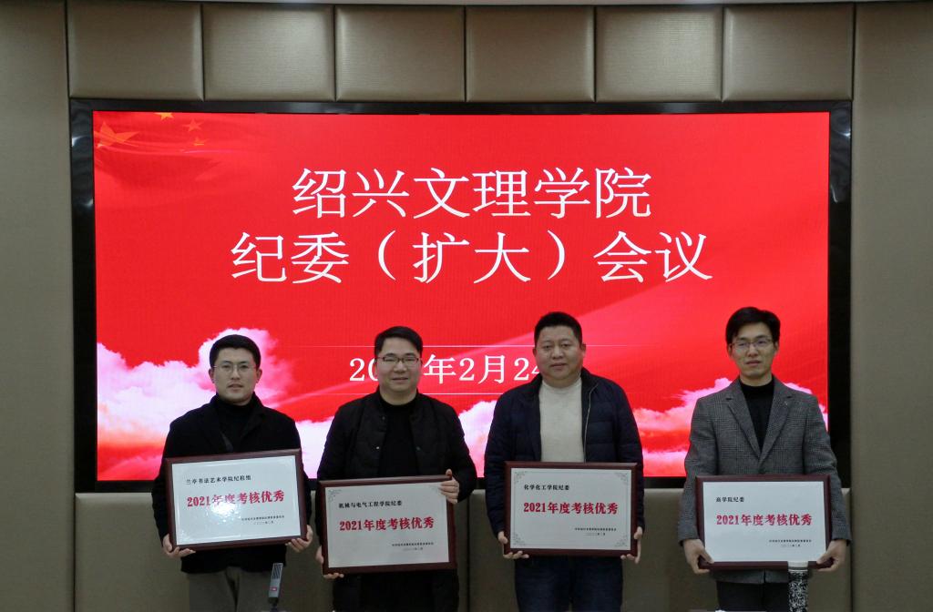 会上还对机械与电气工程学院纪委、商学院纪委、化学化工学院纪委、兰亭书法艺术学院纪检组等4个获得2021年度考核优秀等次的二级纪检组织进行了表彰。