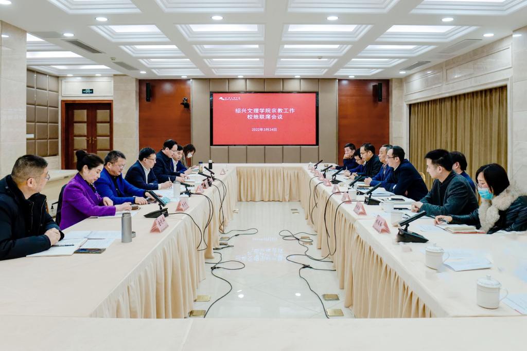3月24日下午,我校宗教事务工作校地联席会议在铁城科教馆一楼会议室召开。市委统战部副部长、市民宗局局长许浩翔,市教育局党委副书记、副局长马成永,市委宣传部(网信办)、市政法委、市公安局、市国安局等部门负责人参加会议。校党委书记汪俊昌,党委副书记沈赤、张宏,校党委统战部、宣传部、学工部、保卫部等部门负责人参加会议。会议由许浩翔主持。