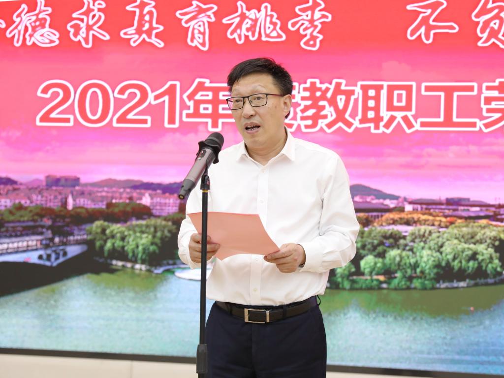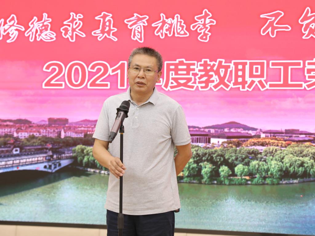 汪俊昌代表全校师生对荣休教职工为学校事业发展做出的无私奉献和出色贡献表示崇高敬意和诚挚谢意,并介绍了2021年学校建设发展取得的标志性成果和“十四五”时期学校建设发展思路。他指出,荣休的教职工们把立德树人、铸魂育人的使命与担当书写在学校的发展史上,是学校事业开疆拓土、蓬勃发展的创造者、建设者与见证者。他表示,学校将会一如既往地支持与关心退休教职工,希望荣休教职工们能为学校的发展继续出谋划策,对学校发展多提宝贵意见。