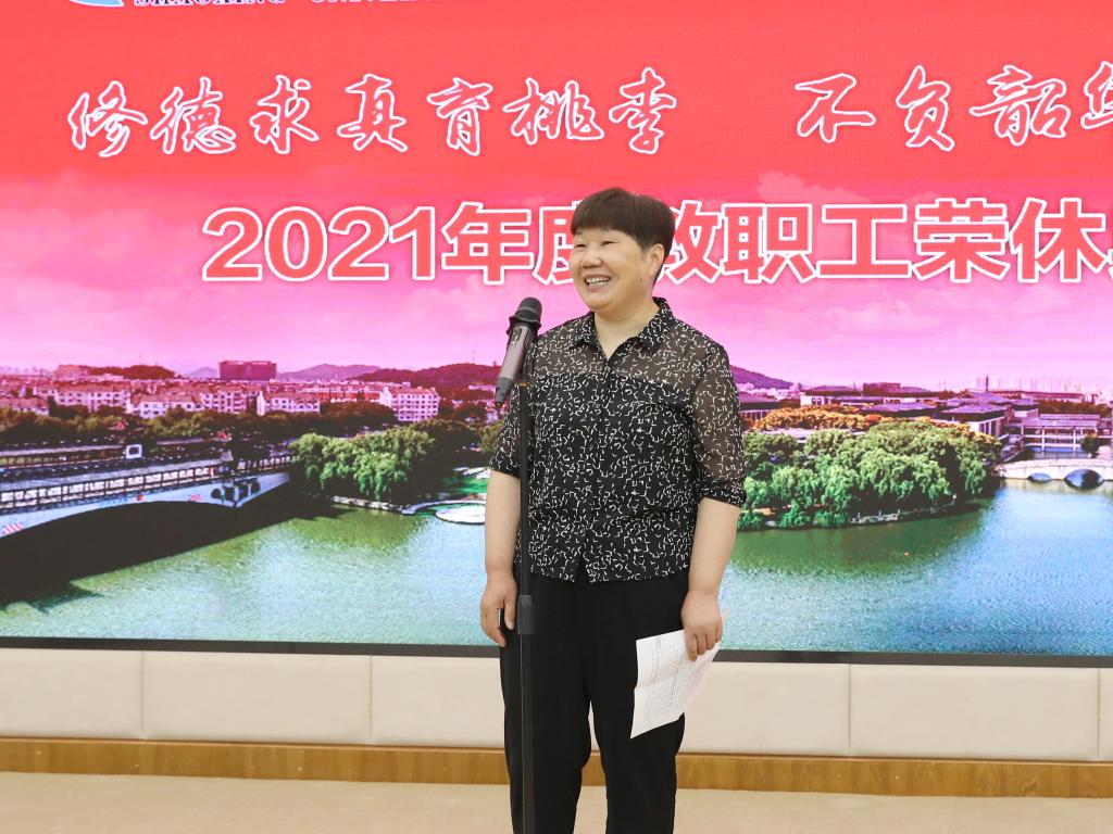 离退休处处长朱莲芬代表离退休工作服务的相关职能部门,欢迎荣休教职工加入离退休大家庭。