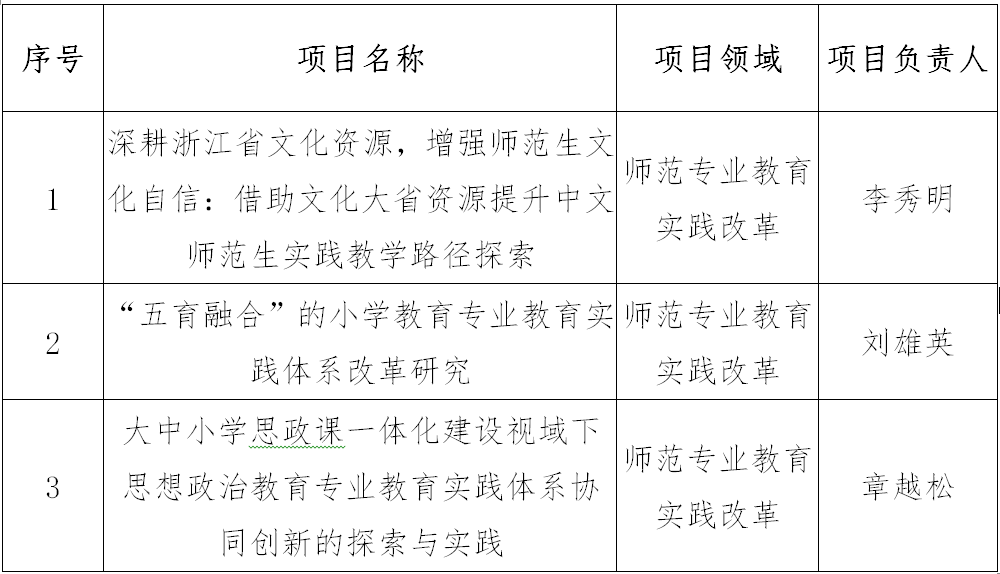 近日,省教育厅发布《浙江省教育厅办公室关于公布浙江省教师教育创新实验区第二批建设项目的通知》(浙教办函〔2022〕200 号),我校3个项目获批第二批浙江省教师教育创新实验区建设项目。