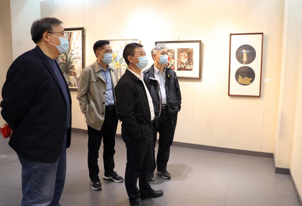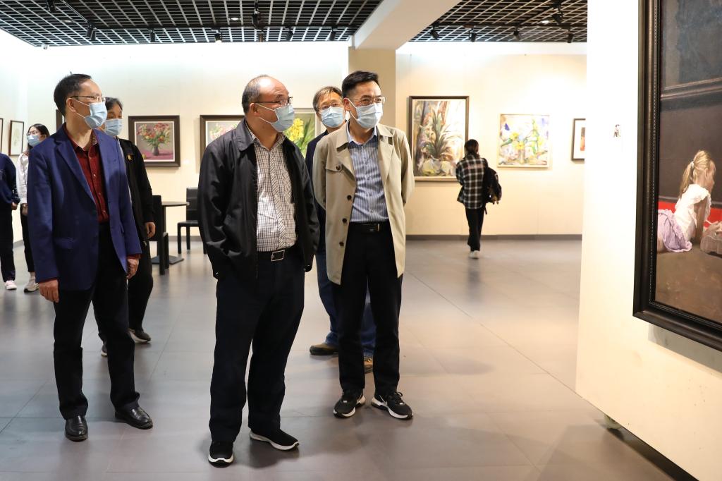 音乐会开始前,嘉宾们参观了“艺术学院美术系教师暨越城优秀校友美术作品展”。本次展览共展出美术系教师及越城区优秀校友的中国画、油画、漆画、综合材料、书法等形式的美术作品100余幅,作品形式各异、风格不同、题材丰富、类型多样,与音乐会传达出一个共同的主题——脚踏坚实的大地、放飞梦想的翅膀,以薪火相传的节奏编织时代交响,奏响奋进新征程的华美乐章。