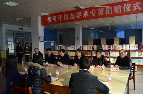 继2012年6月,将获得的中国软科学奖最高奖20万元奖金全部捐赠给母校用于设立“明华人才奖学金”后,今年,中共中央编译局副局长、政史81届俞可平校友又向母校捐赠本人学术专著及其他书籍近1000册,以支持母校校友书架建设。12月26日下午,专著捐赠仪式在校图书馆三楼举行。校党委钱水祥副书记主持捐赠仪式。校长叶飞帆,校友总会会长宋培基,校友总会顾问许学刚,党校办、学工部、校友联络办、团委、图书馆等部门负责人,法学院、人文学院师生代表们参加了捐赠仪式。