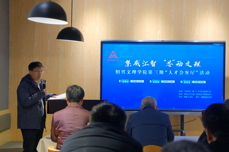12月5日下午,第三期“人才会客厅”活动在学校“人才之家”举行。本期“人才会客厅”以“集成汇智、‘芯’动文理”为主题,由党委人才办主办,数理信息学院承办,邀请人文学院院长李圣华教授、绍芯实验室执行主任王跃林教授、数理信息学院国家级领军人才李洪文教授作主题发言。校党委副书记沈赤,党委委员、组织部部长宣绍龙,学校30多名高层次人才参加活动。