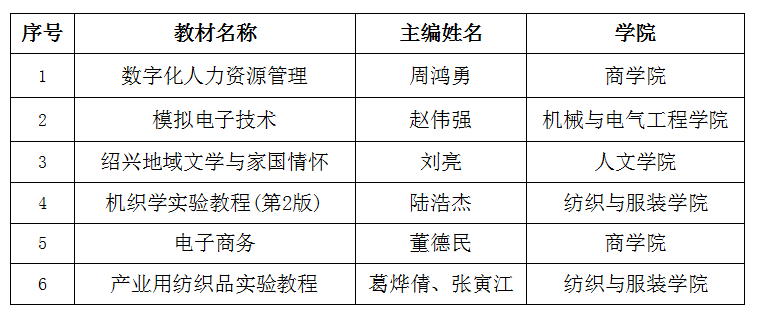 日前,浙江省高等教育学会公布了省普通高校“十四五”首批新工科、新文科、新医科、新农科重点教材建设项目评审结果,我校推荐的6部教材全部获得立项,分别是: