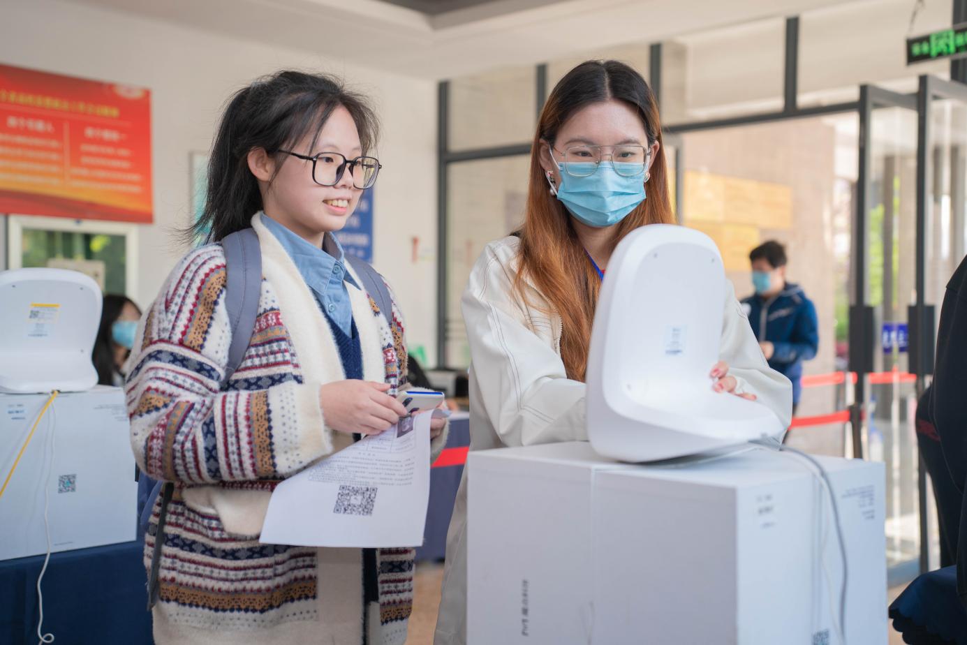 本次测试共有600余名考评人员和志愿者参与工作。为杜绝替考作弊等行为,学校今年继续启用智能人脸识别仪核验考生身份。