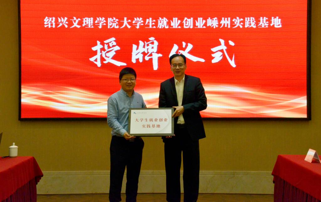 会上,学校与企业签订了大学生就业创业实践基地合作协议。张宏、陈均土分别为基地授牌。