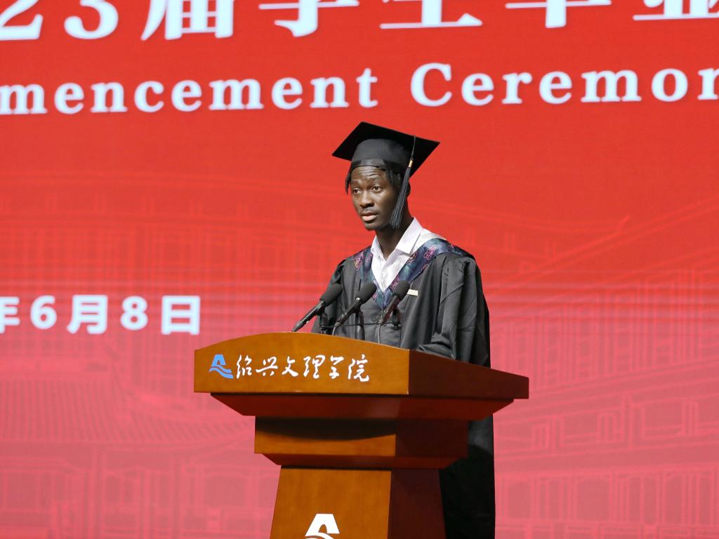 国际留学生毕业生代表,来自利比里亚的医学院护理学191班福兰西发言。