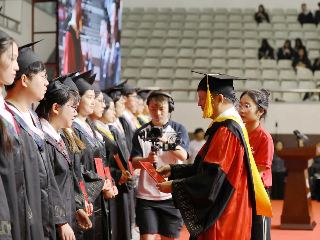 赵阳为毕业生代表授予学位、颁发学位证书。