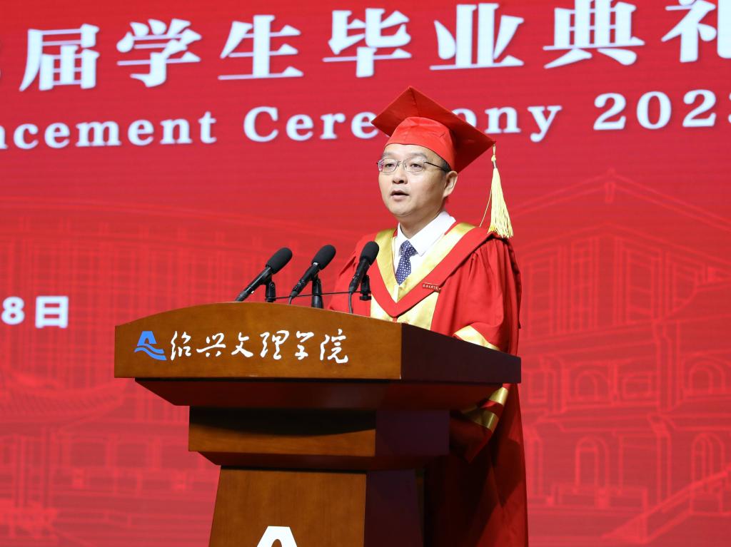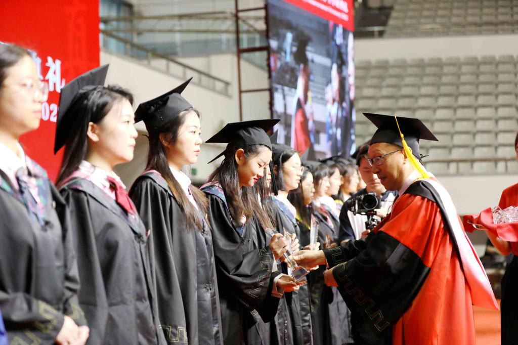 你们是我来文理担任校长后授予学位的第一届毕业生,前两天我一一为各位拨穗,送上祝福,分享你们的喜悦,我由衷地为大家感到高兴。四年中,你们秉承“修德求真、追求卓越”的文理精神,上下求索,风则江边、传信桥上、学思亭中、兰亭照壁,校园的每一个角落,都留下了你们求知若渴的身影、拼搏奋斗的汗水和辛勤耕耘的足迹。你们乐于奉献,四年间,志愿服务总时长13万小时、无偿献血共35万毫升,龙殊仪同学被评为中国红十字会“会员之星”,季楚琳同学荣获全国红十字应急救护大赛团体一等奖,13位同学报名参加“志愿服务西部计划”,15名同学报名参军、立志投笔从戎。你们勇攀高峰,赵雨晴等6名同学斩获全国“互联网+”大学生创新创业大赛银奖,实现了我校该项赛事上的新突破;66名同学获国家级大学生创新创业训练计划立项,44名同学获省“新苗人才”计划立项,1467人次获省级以上各类学科竞赛奖项。你们追求卓越,161位同学被评为省级优秀毕业生,施益欣同学荣获“中国大学生自强之星”称号,9位同学考取博士研究生,468位同学考取硕士研究生,即将赴浙江大学、悉尼大学等高校继续深造,还有更多的同学将在不同的舞台上绽放青春、成就梦想。作为你们的师长和朋友,我由衷地感到高兴和骄傲,对你们的未来充满憧憬和期待。