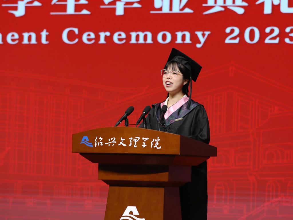 本专科毕业生代表,校十佳大学生、化学化工学院科学教育(师范3)191班孙贝贝发言。
