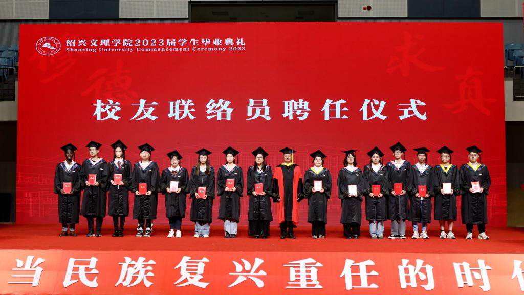 校友代表们通过短视频为学弟学妹们送来饱含深情的毕业祝福。离校不离心、毕业不断线,为进一步加强增进校友情谊,凝聚校友力量,典礼举行了2023届校友联络员聘任仪式,沈赤为各二级学院校友联络员颁发聘书。