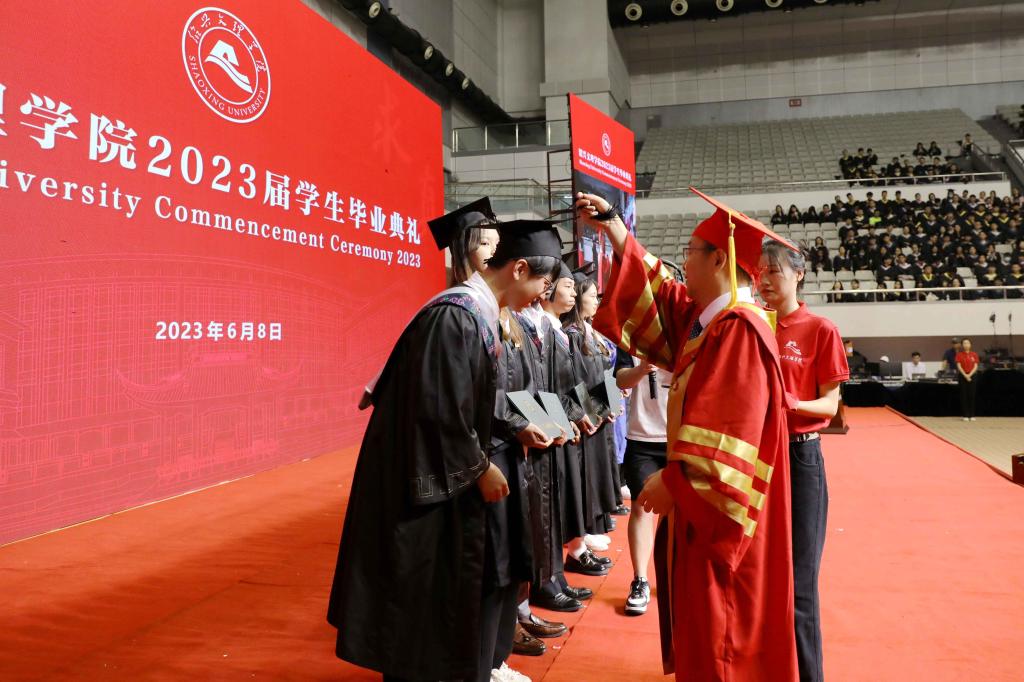 6月6日-7日,为期整整两天的学位授予仪式在风则江大讲堂报告厅举行。校长赵阳身着导师服,和2023届毕业生一一握手,为他们拨穗,祝贺他们顺利圆满完成学业,与他们一同分享毕业的喜悦。