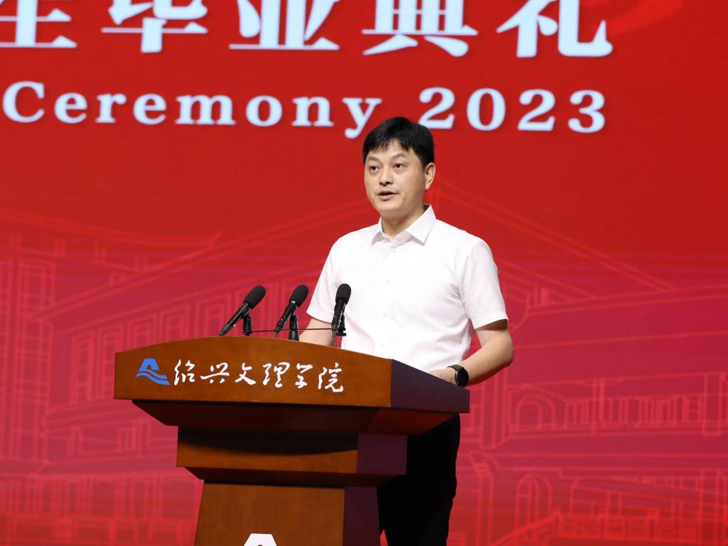 赵阳致辞。他向毕业生们送上诚挚的祝贺和美好的祝福,赞许他们取得的进步、收获的荣誉,悉数近年来学校在内涵建设上取得的标志性成果,勉励师生共同努力,开创更精彩的未来。