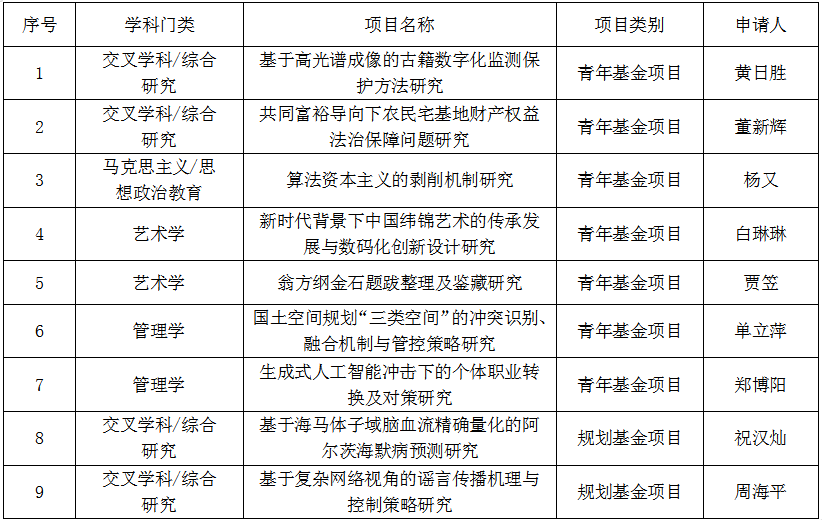 9月15日,教育部网站公示了2023年度教育部人文社会科学研究一般项目的评审结果,本年度我校获批项目共计9项,立项数再创新高。其中规划基金2项、青年基金7项,在同类院校中排名前列。学科门类中,交叉学科/综合研究立项4项。