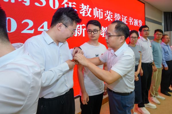 学校举行任教30年教师荣誉证书颁发暨2024年新进教师入职仪式