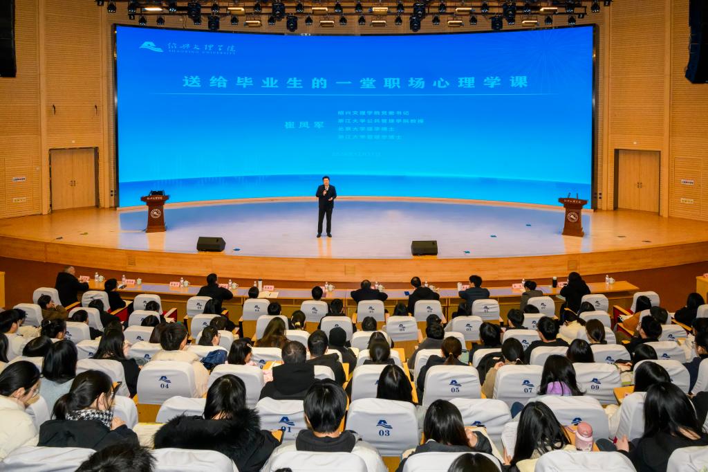 12月11日下午,校党委书记崔凤军在风则江大讲堂报告厅开讲,为毕业生送上一堂精彩的职场心理学课,毕业生们对亦师亦长的殷殷教诲、亲切叮咛和深情祝福报以热烈的掌声。校党委副书记黄坚,党委委员、宣传部部长宋浩成参加讲座。