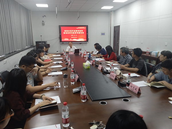 数理信息学院党委书记史正东主持会议,并作学院开展学习宣传贯彻校第四次党代会精神和开展党纪学习教育的情况汇报。