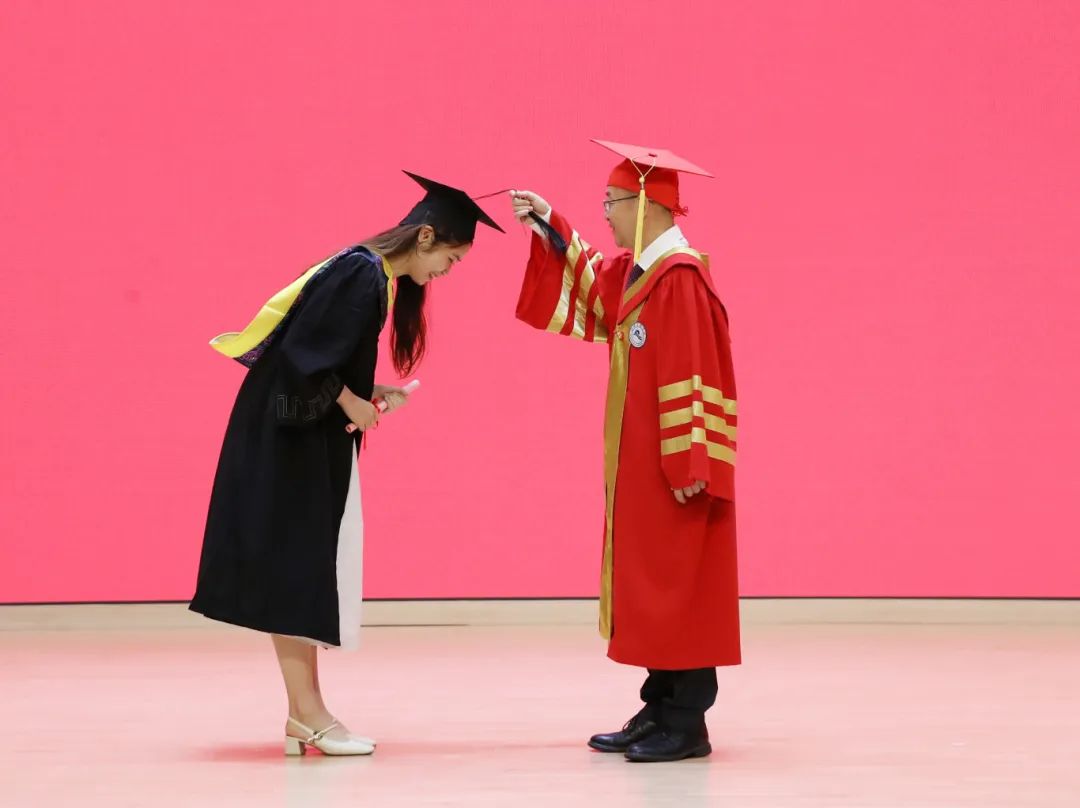 6月13-14日,学校为2024届毕业生举行庄重的学位授予仪式。校长赵阳为2024届毕业生授予学位,与毕业生们一一握手,拨穗正冠,合影留念;衷心祝贺学生们圆满完成学业,祝福毕业生们生活幸福、事业有成、身体健康。现场氛围温馨活泼,同学们也准备了各种合影动作,表达毕业生对学校的无限热爱和喜悦心情。 各二级学院党政负责人分别主持学位授予仪式并致辞。