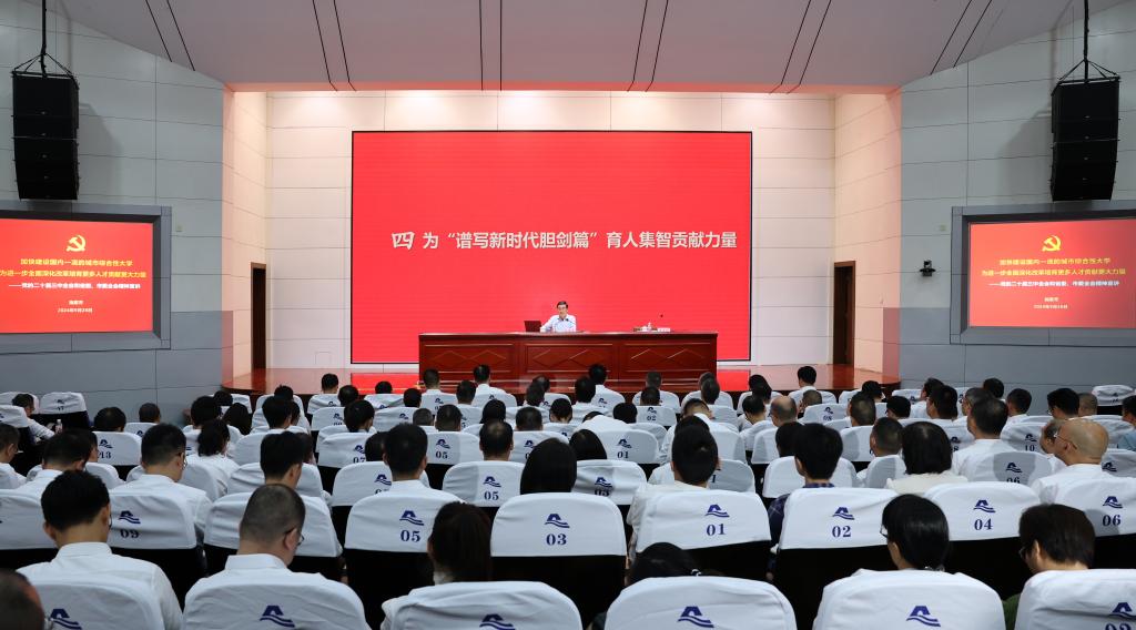 施惠芳深入阐述了党的二十届三中全会的重大里程碑意义,并从三中全会的鲜明主题、“六个坚持”的重大原则、“五个注重”的改革布局、自我革命与深化改革的内在逻辑等方面,与学校师生分享交流学习体会。他说,党的二十届三中全会开启了党的十八届三中全会以来全面深化改革的实践续篇、新时代新征程推进中国式现代化的时代新篇,我们要系统全面学习、完整准确把握,学深悟透全会精神的丰富内涵。
