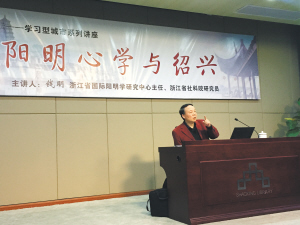 近日,越文化研究院与市王阳明研究院联合举办的2017年度“王阳明研究系列讲座”首讲在绍兴市图书馆二楼报告厅隆重登场,我校“鉴湖学者”讲座教授、浙江国际阳明学研究中心主任钱明作题为《阳明心学与绍兴》的学术报告。