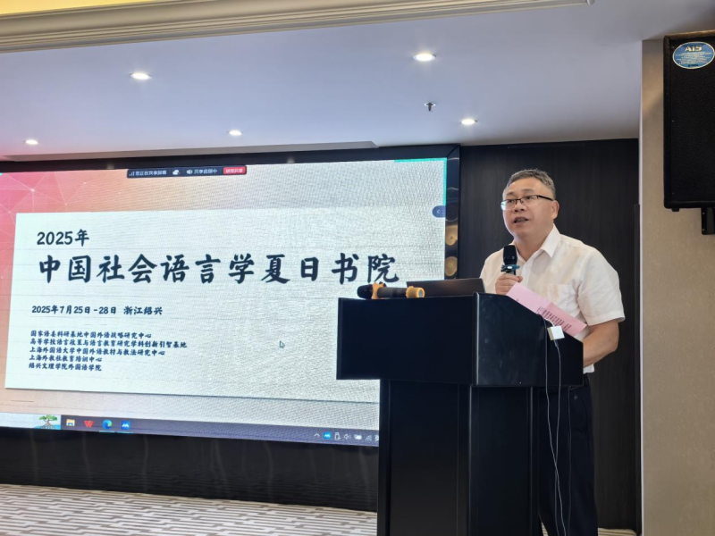 7月25日至7月28日,“2025年中国社会语言学夏日书院”在绍兴顺利举办。本次活动由国家语委首家科研基地中国外语战略研究中心、高等学校语言政策与语言教育研究学科创新引智基地、上海外国语大学中国外语教材与教法研究中心、上海外教社教育培训中心及我校外国语学院联合举办。副校长柳国庆,上海外国语大学教授赵蓉晖、中国社会科学院大学教授郭龙生等9位主讲专家,100余位学员参加。开幕式由外国语学院院长胡朋志主持。