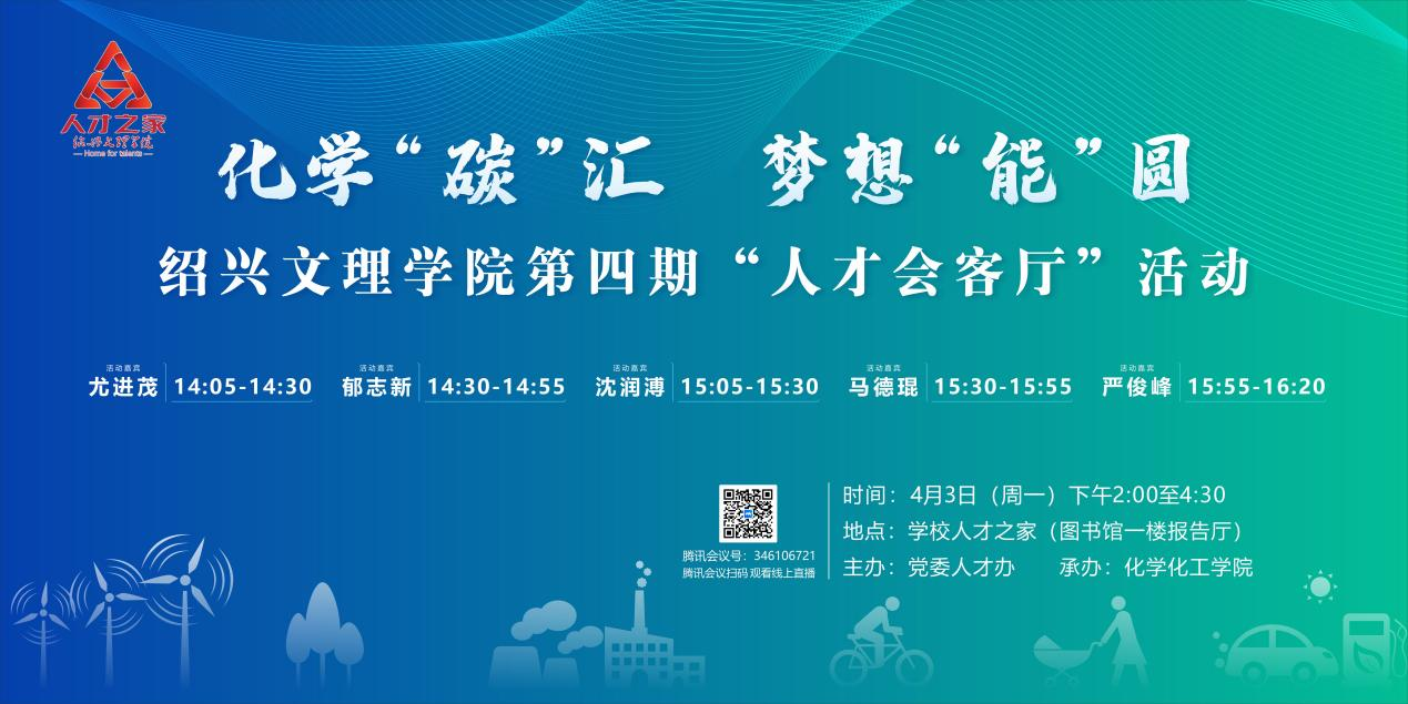 4月3日下午,第四期“人才会客厅”活动在学校“人才之家”举行。本期“人才会客厅”以“化学‘碳’汇 梦想‘能’圆”为主题,邀请了挪威工程院院士郁志新教授,化学化工学院尤进茂教授、沈润溥教授、马德琨教授,纺织服装学院严俊峰教授作主题发言。校党委副书记沈赤,校党委人才办有关负责人,学校相关学科高层次人才、师生近100余人通过线上线下的方式参加了活动。本期活动由党委人才办主办、化学化工学院承办。