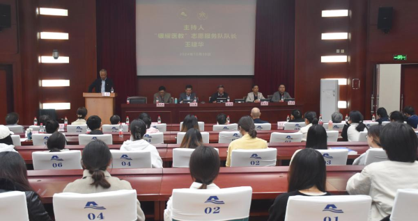 学校“银耀医教”志愿服务队的10位党员志愿者徐杏根、钟建平、叶访春、阮萍、蒋月琴、任东扬、寿垚芳、潘家标、何蓓、颜艳,给获得2024年第三届“银耀医教奖学金”的10位学生党员、入党积极分子颁发奖学金。周武强宣读获得2024年第三届“银耀医教奖学金”文件。